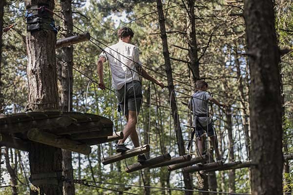 Im Kletterwald (‘het Klimbos’) können Sie mit Hilfe verschiedener Hindernisse klettern von einem Baum in den anderen. Zuerst bekommen Sie einen völligen Sicherheitsunterricht und während der Ausführung sind unsere deutschsprechenden Instrukteure immer in der Nähe. So wird es herausfordernd, aber nie gefährlich. Wegen des zunehmenden Schwierigkeitsgrades der Strecken die man klettern kann, ist es für jede Person möglich an diese Aktivität teilzunehmen und bestimmt jede(r) selber wie weit er oder sie geht. Mit nicht weniger als 76 Hindernissen und 10 Seilbahnen (2 davon befinden sich oberhalb des Wassers) ist der Kletterwald von Joytime zurecht der meist variierte Kletterwald in den Niederlanden. Außerdem ist speziell für die kleinen Affen von 4 bis 7 Jahre einschließlich ein Kletterpark Der Kleinen gebaut worden. Unter Aufsicht eines Erwachsenen (Vater oder Mutter zum Beispiel) erleben sie auf niedriger Höhe dasselbe wie die älteren im großen Kletterwald.