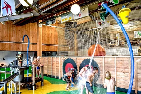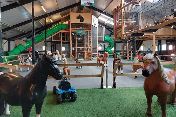 Neben dem großen Freiluftspielplatz gibt es auch einen Indoorspielplatz. In diesem Spielschuppen mit ganzen 3 Etagen gibt es eine tolle Spielmanege mit Kletter- und Rutschturm und einen Bauspeicher mit Spielklötzen. Die unterste Etage des Spielschuppens ist komplett dem Glow in the Dark vorbehalten. Hier finden sich altholländische Spiele, ein Panna-Fußballfeld und interaktive Spiele.