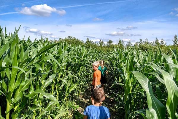 Im Sommer, wenn der Mais hoch genug ist, kann man das Maislabyrinth erkunden. Das Maislabyrinth des Spielbauernhofs De Drentse Koe ist das erste interaktive Maislabyrinth der Niederlande. Das Labyrinth ist ein Spaß für jede Altersgruppe. Unterwegs gibt es eine echte Schnitzeljagd, bei der die Kinder Fragen beantworten müssen. Es gibt für jedes Alter ein entsprechendes Niveau. Es gibt Fragen für Kleinkinder, Vorschulkinder, Schulkinder und Jugendliche.