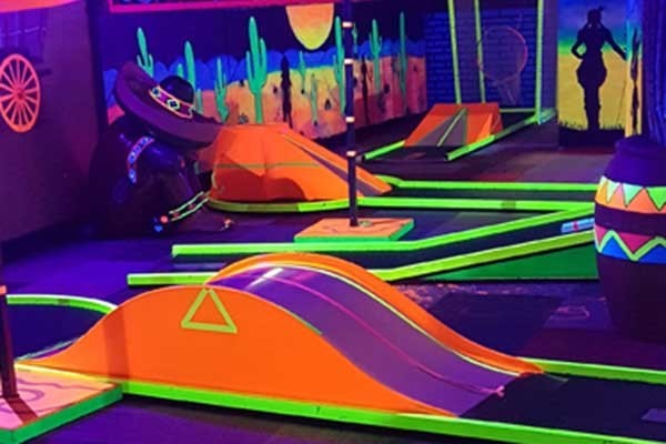 Die einzigartige 18-Loch Minigolfbahn ist komplett auf das Thema Wilder Westen zugeschnitten und bietet allen Spielern eine tolle Herausforderung. Das Cowboy & Indianer Spielreservat verfügt zudem über eine überdachte Glow-in-the-Dark Minigolfbahn. Dort wird in einem abgedunkelten Raum gespielt, der nur von den Schwarzlicht-Malereien, Dekorationen und der Golfbahn selbst beleuchtet wird! Die Schläger, die Bälle, alles leuchtet!